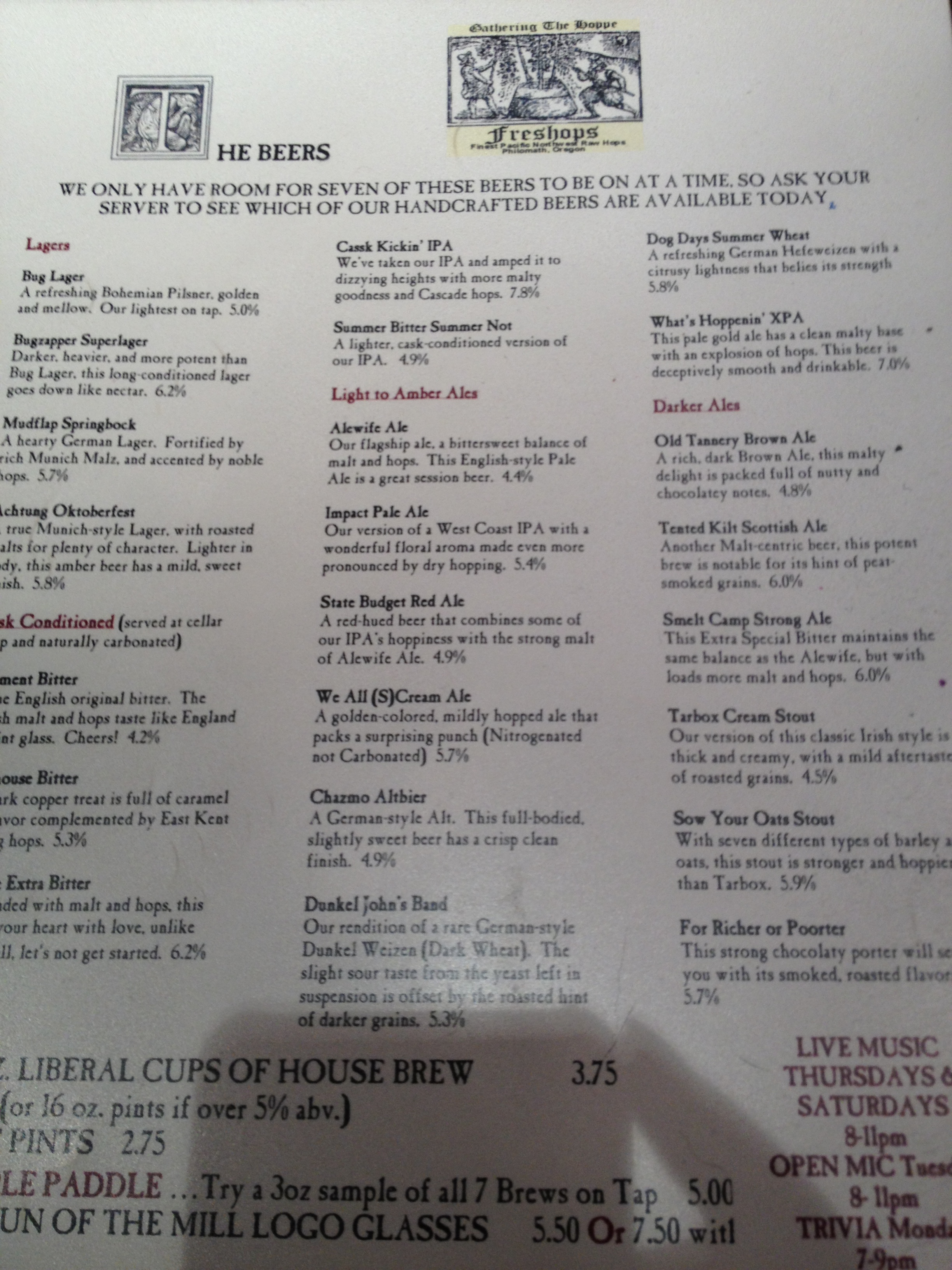 The Liberal Cup and Run of the Mill Public House are combined in this blog because they are another of Maine’s incestuous brew pubs. I had no idea on these two were basically the same until I was told by a truly independent brewer. I must say that the fact that these are owned by the same people and carry the same beer was a bit disappointing. They both had so much character and charm that I wanted to see them show that in their beer selection.