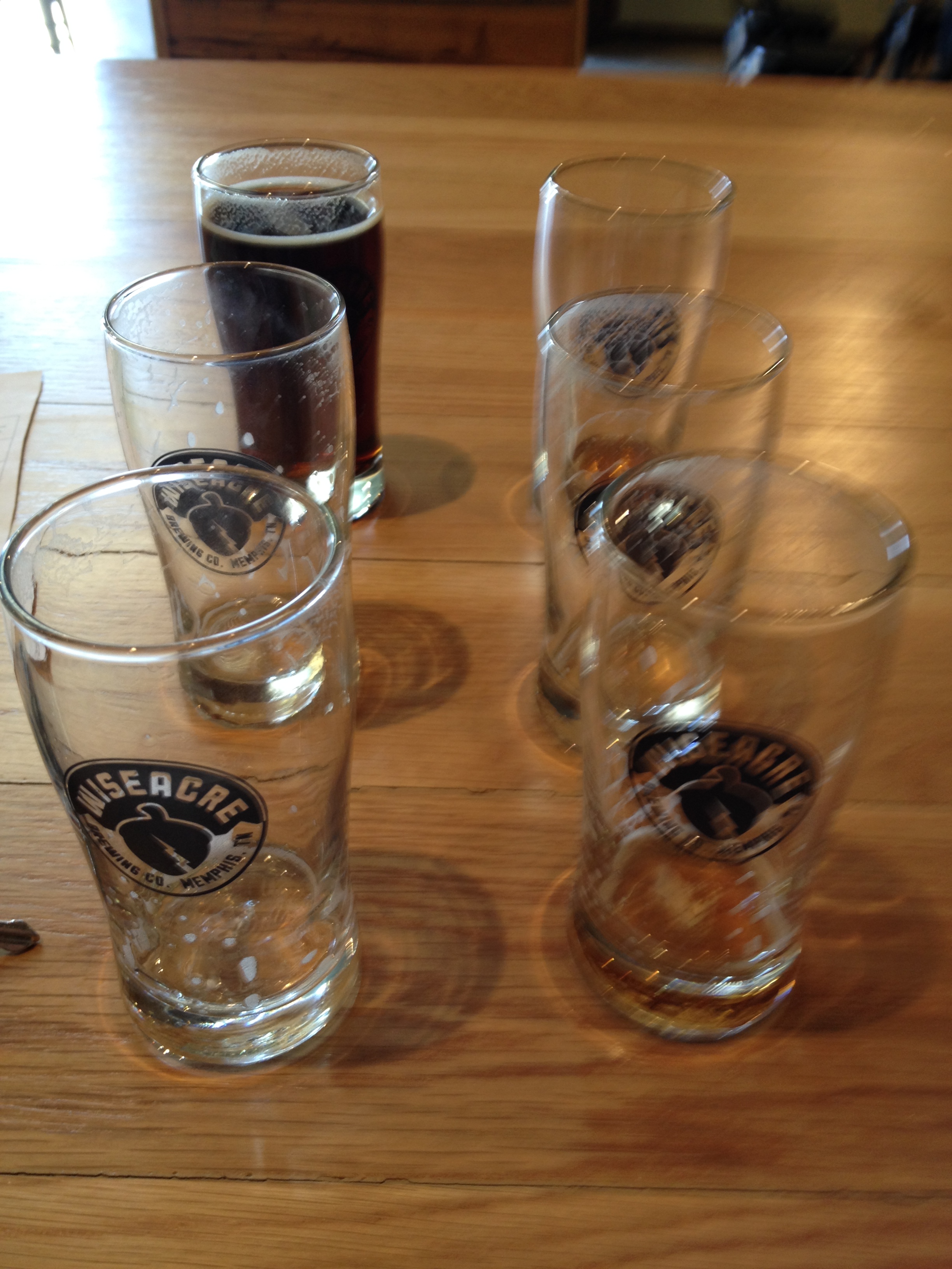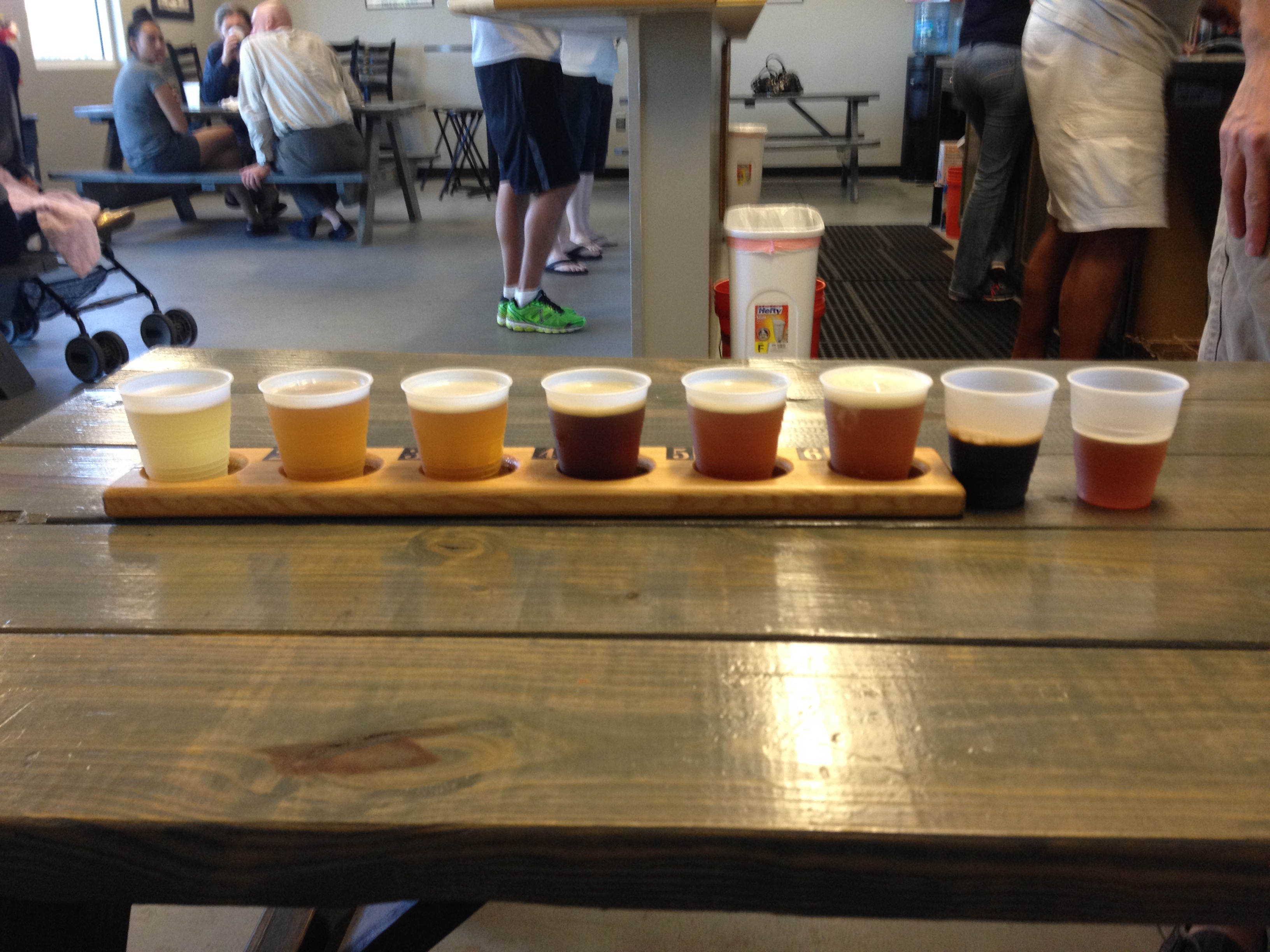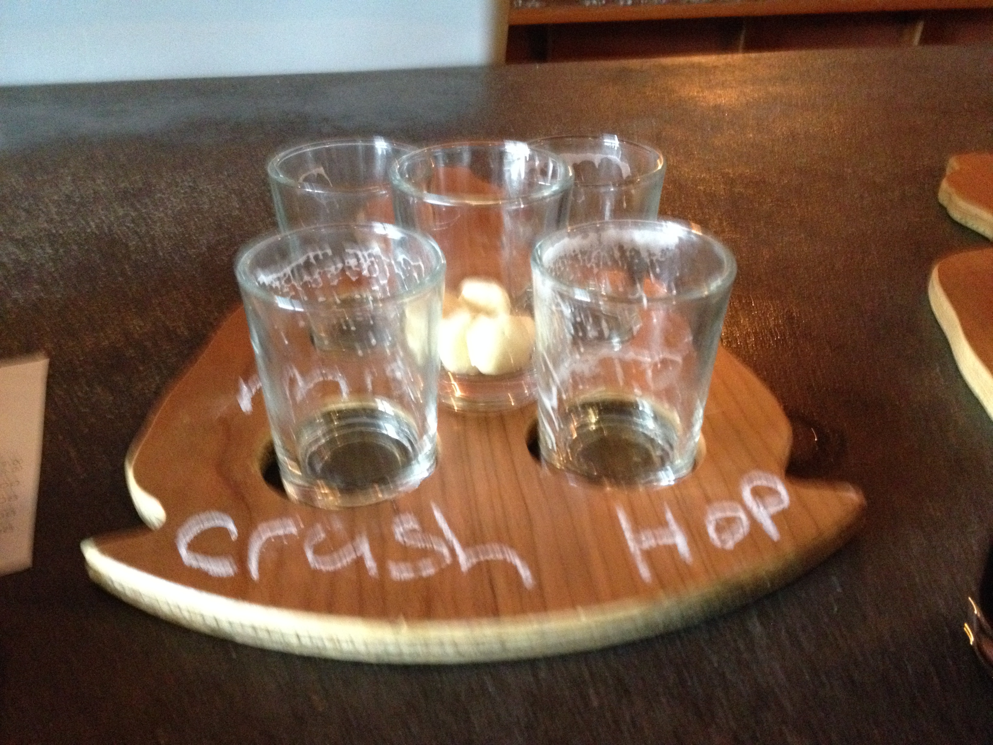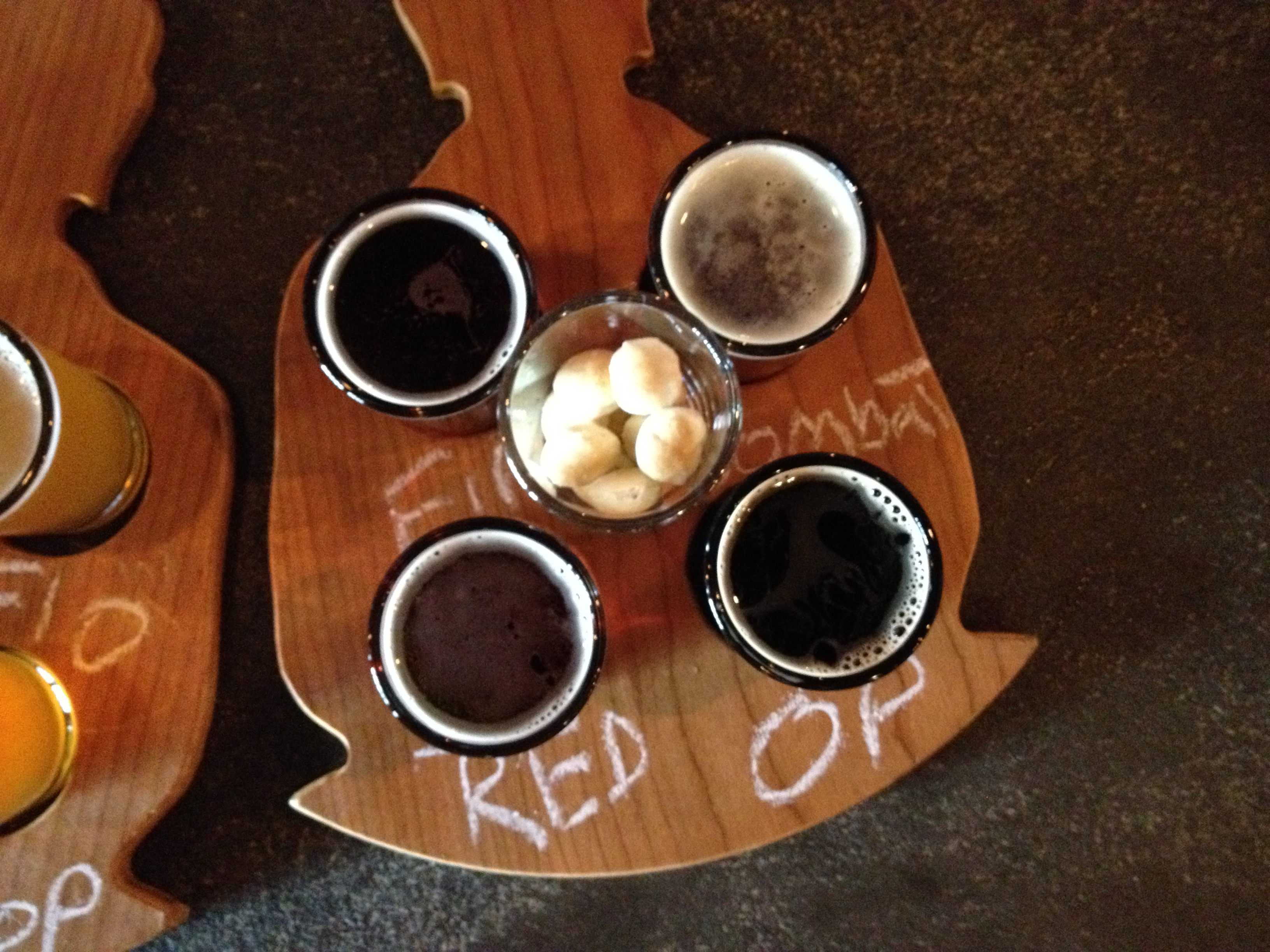 Not to harp too much on the tasting room, the beers are very good here too. The Floridian Hefeweizen was very light and refreshing with traditional hints of clove and banana. I had to go for a whole pint of this one as I am starting to rekindle my taste for hefeweizens. The Crusher Session IPA was a low to medium hopped beer that would be great for someone who wants some hops but is not a true “hop head.” The Missionary Blonde was not my favorite as it had a little bit of an aftertaste that reminded me of tar. The Hop Gun IPA was similar to the Crusher Session in taste but had a bit more alcohol content and a more amber color. The Red Dawn Ale was OK according to my husband because as everyone knows I am not a fan of reds. The taste reminded me a bit more of brown ale than a red and had a hint of spice reminiscent of nutmeg. The OP Porter was a good solid porter and would be great if we ever had a cold night. The Combat Rock Amber was very mild and reminded me a bit of Killian’s red. The most surprising beer of the evening was Fire in the Hole, a raspberry Habanero brew. I personally would have never though that raspberries and Habaneros would go together, and I certainly wouldn’t think they would mix well in a beer. However, I actually quite enjoyed this beer. The raspberry and Habanero were both very evident on the nose and in the taste. The Habanero imparted a short burn on the back of the throat that was not overpowering. I don’t think it is a beer that I could drink more than a few ounces of– but it was a great and unique taste sensation.