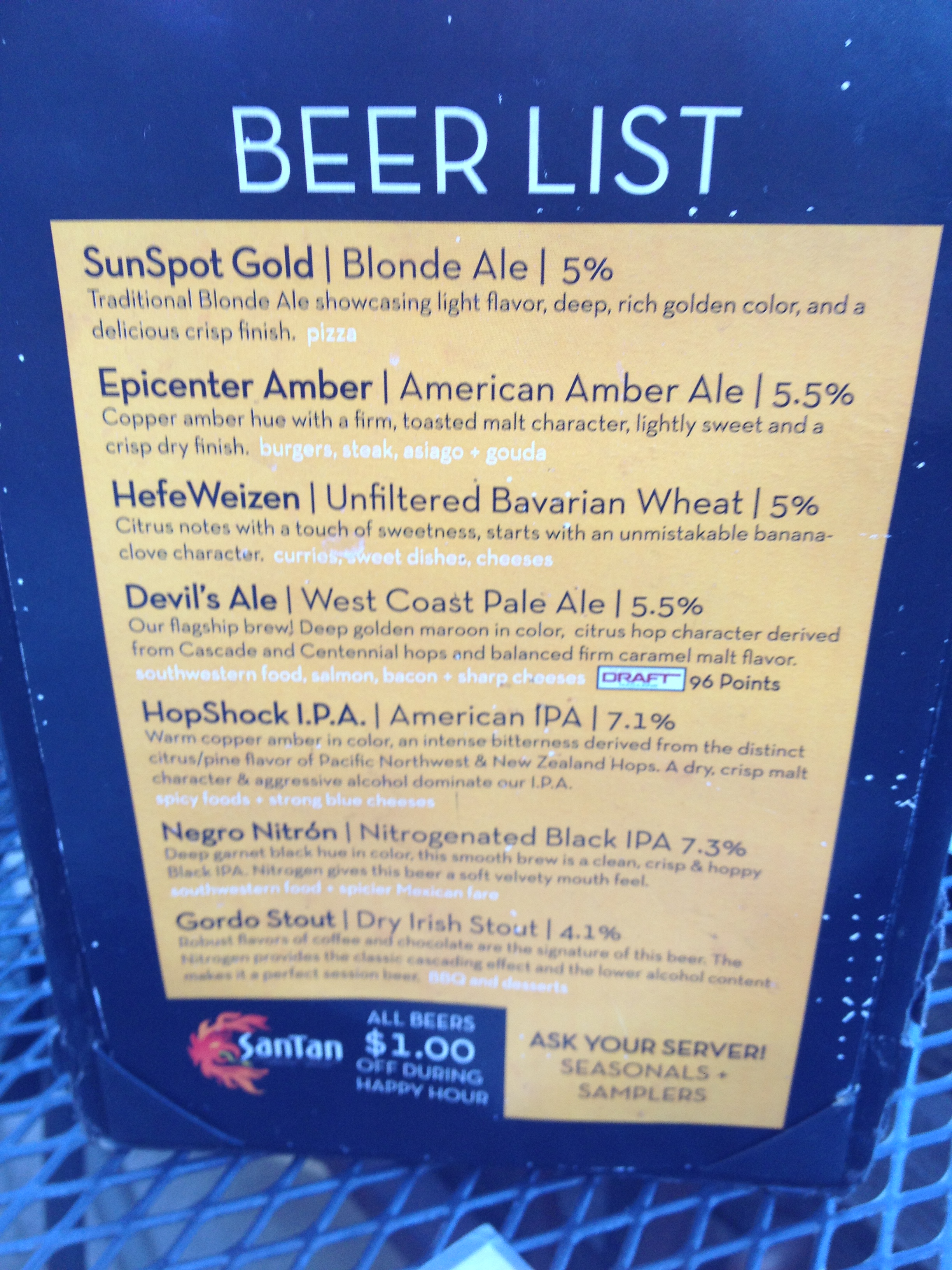 I must mention that the pizza here is really good but the thing that stands out if the beer list. They have close to 50 beers on the list with a large selection of Arizona beers. I had to try a few.