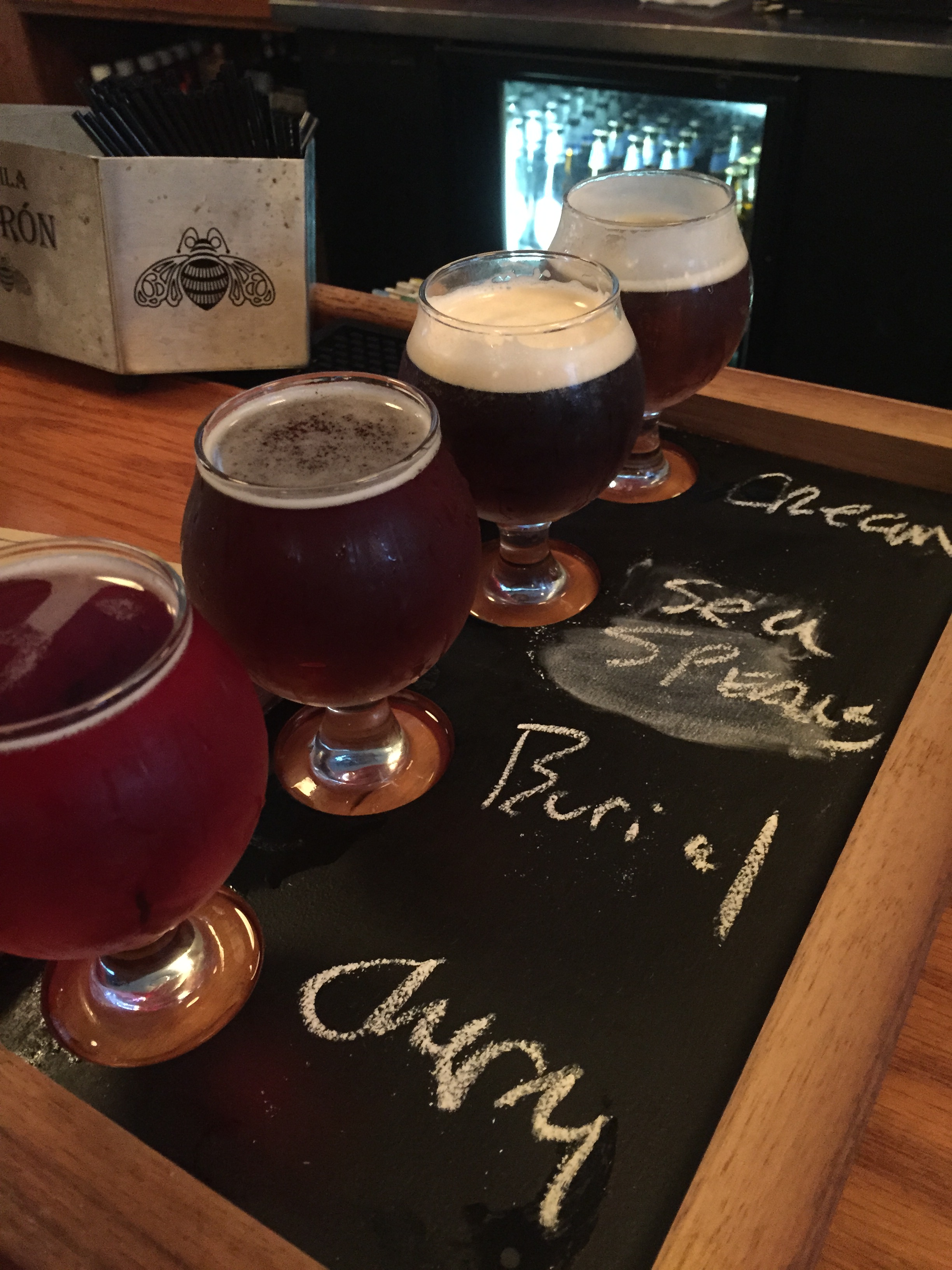 Sea of Spears, a Red Wheat Ale, was very bitter at the end with hop flavors. I wouldn’t call this a wheat and even the menu description seems to imply a red IPA, not a wheat. There are no wheat flavors here.