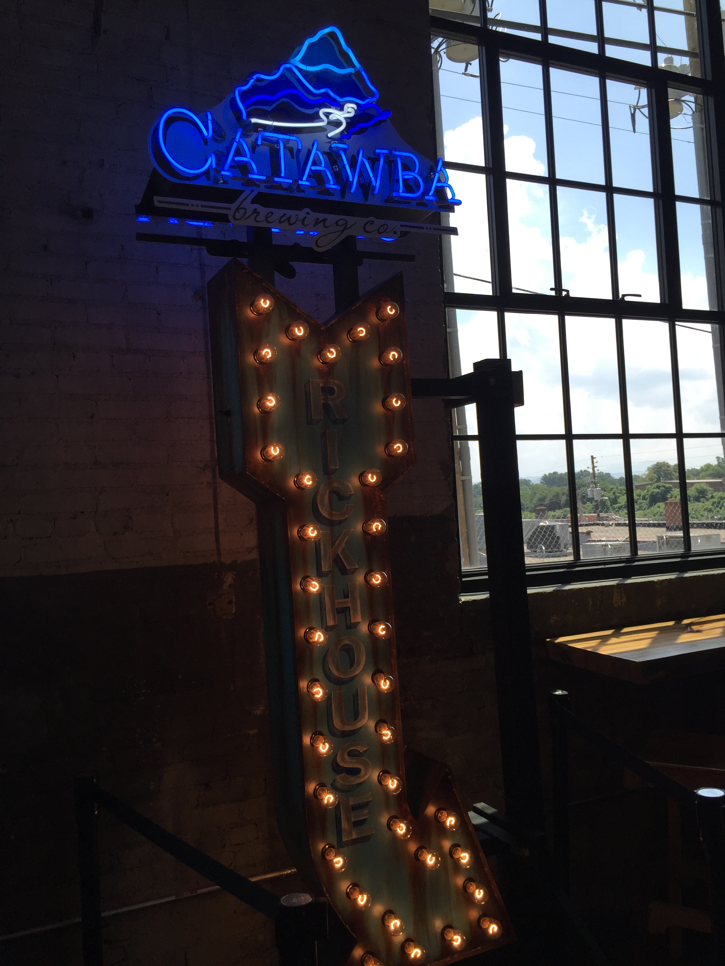 After Burial, we headed to Catawba Brewing. My understanding is that the main brewery is somewhere near Salem, NC, and that this is kind of a satellite tasting room. If it was or not, it had some pretty great beers. We were given a full flight with the REDiculous Red IPA, Sour and Sexxxy Saison, Brewtal Double IPA, and the Barrel Aged Black Dome Stout. The stout is a do not miss– fantastic with great bourbon flavors.