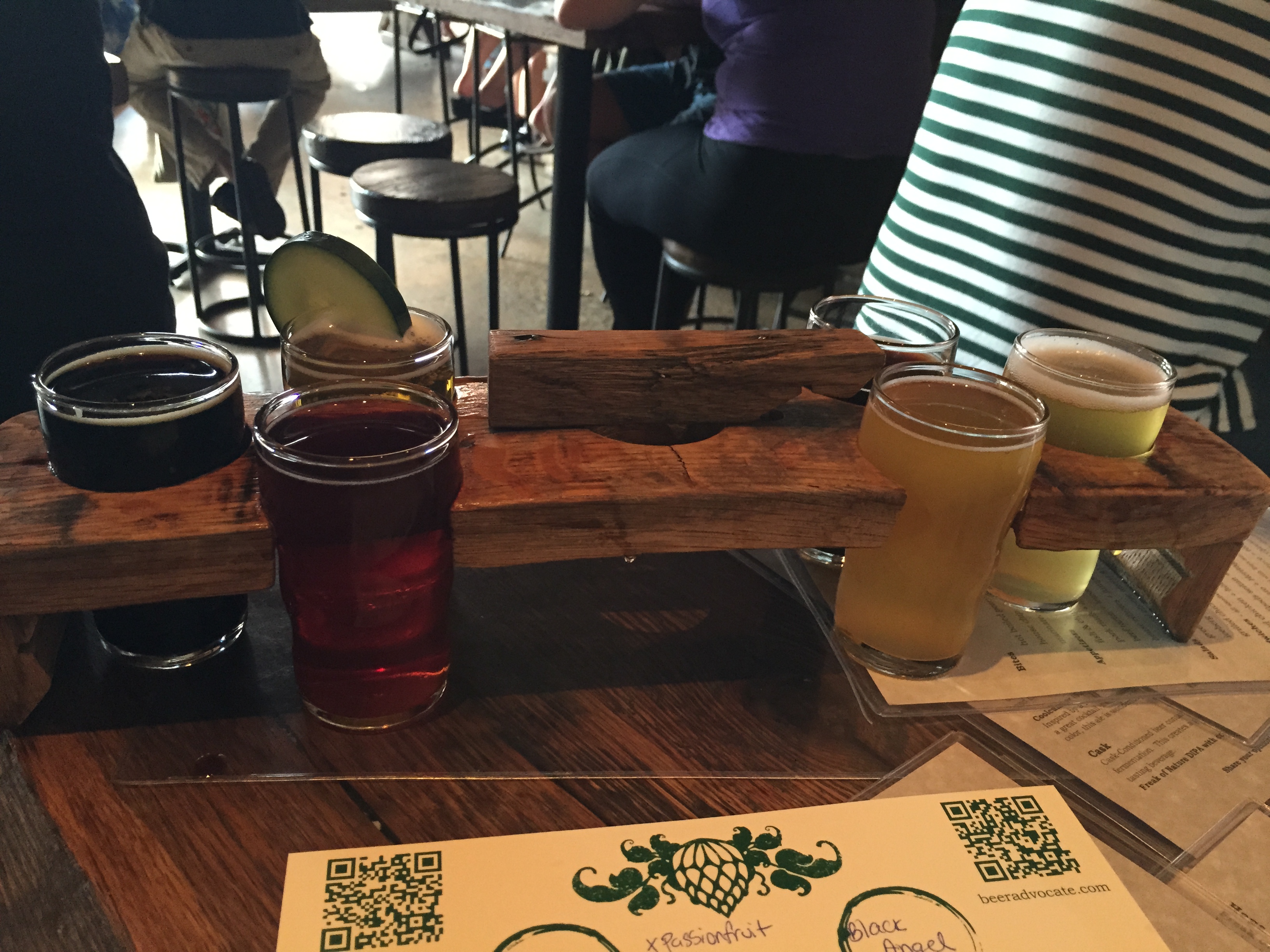 That officially ended the tour but none of us were done. I had to head over to the famous Wicked Weed to try some of their other styles of beer. I found some friends and split a flight that contained– Coolcumber, Currant Raspberry IPA, Tropic Most Gose, XLVII Pineapple Guava Saison, Black Angel Cherry Sour, and XLVI Salted Chocolate Black Saison.