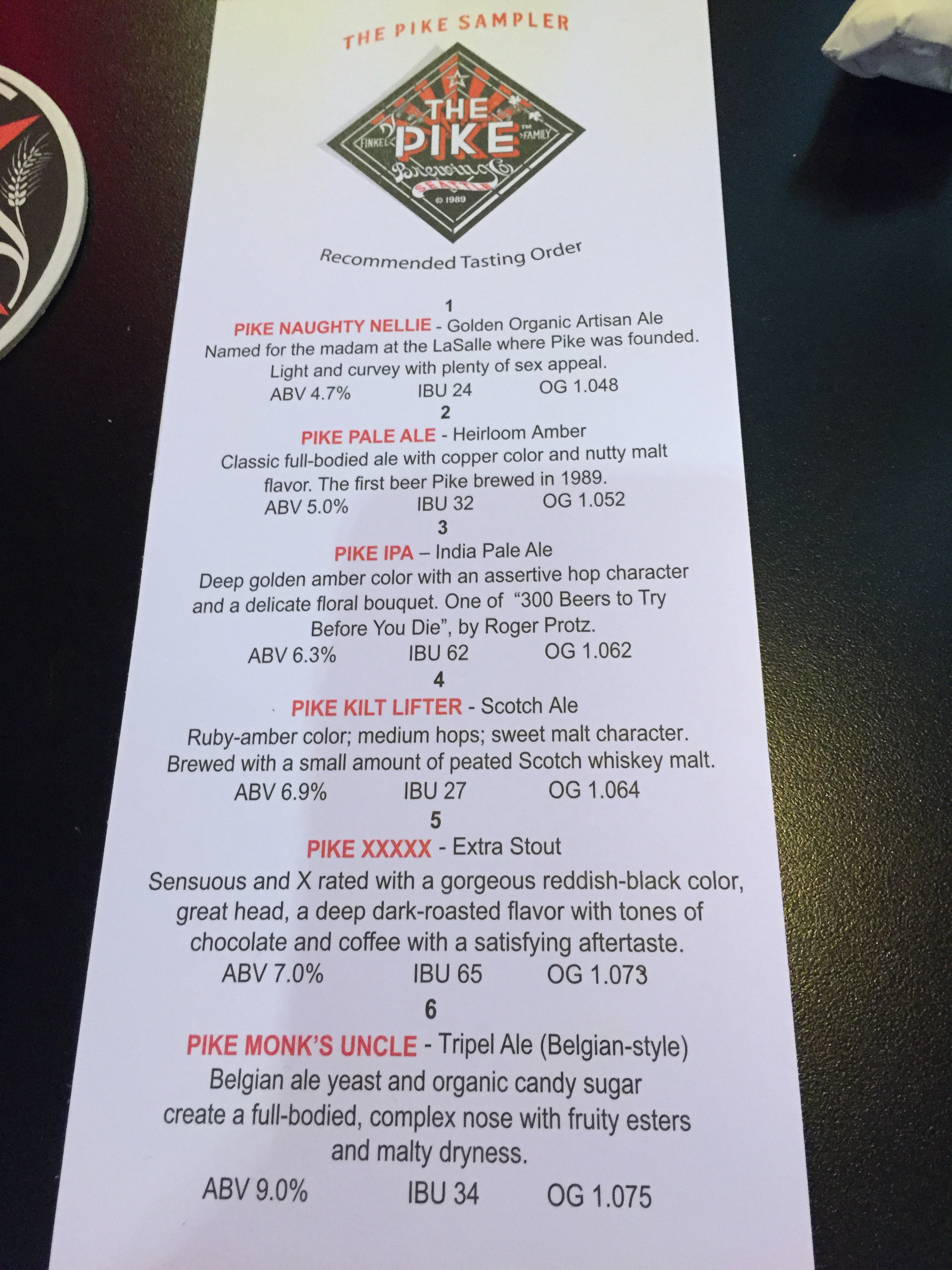 Thanks for stopping in to Pike Brewing Company! Glad you enjoyed your food and got a chance to try some of the core beers. Our line-up changes frequently, so keep an eye on Untappd to see what we’ve got on. Welcome to the neighborhood.