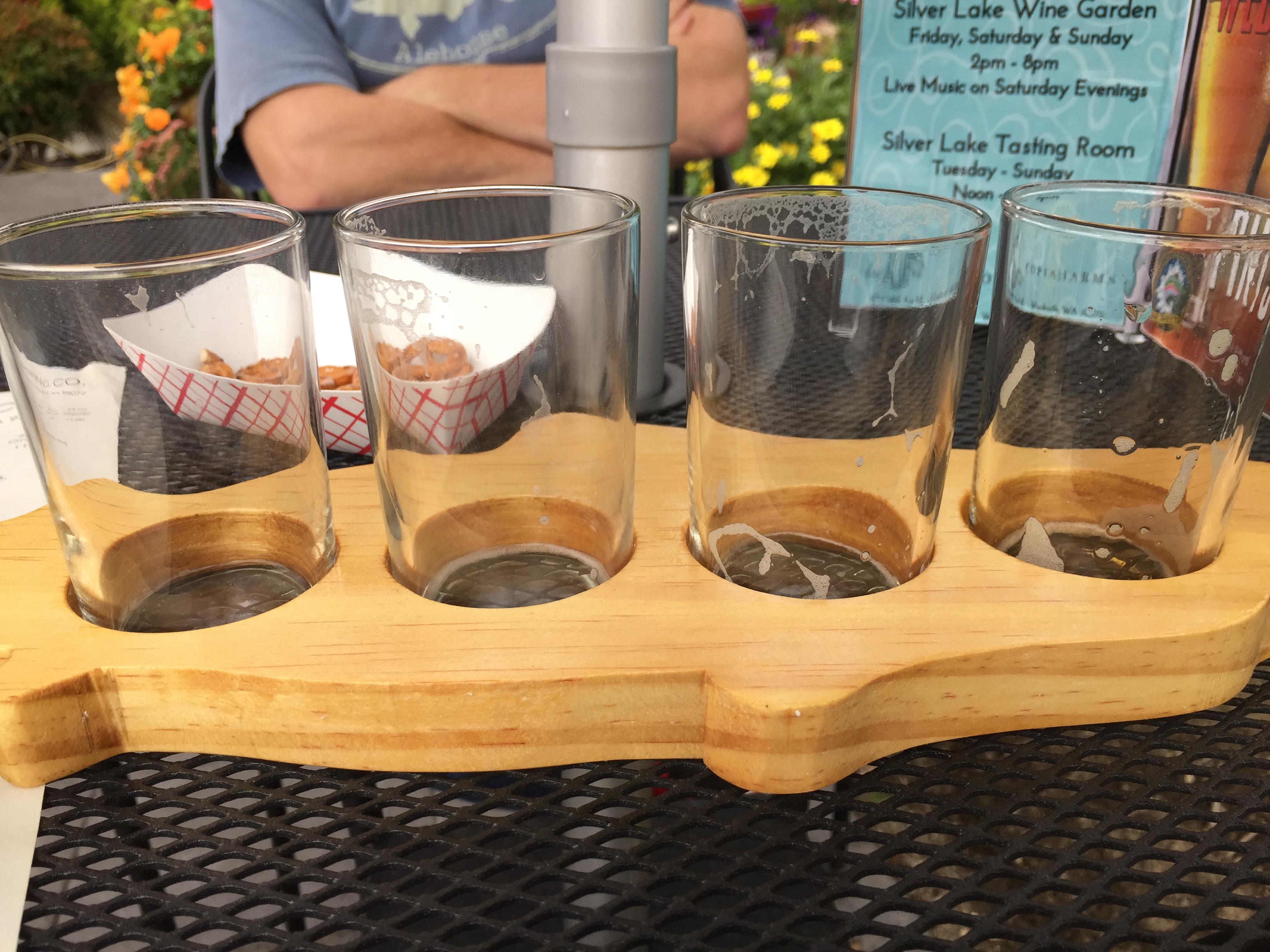 For those of you not familiar, Woodinville is just north of Redmond and is home to about 100 wineries. We were driving through a few weeks ago and saw a little tasting room for Fish Tale beers, which advertised that these beers had been voted some of the best in the state. We decided that the next time we were up there, we would stop in and give them a try.
